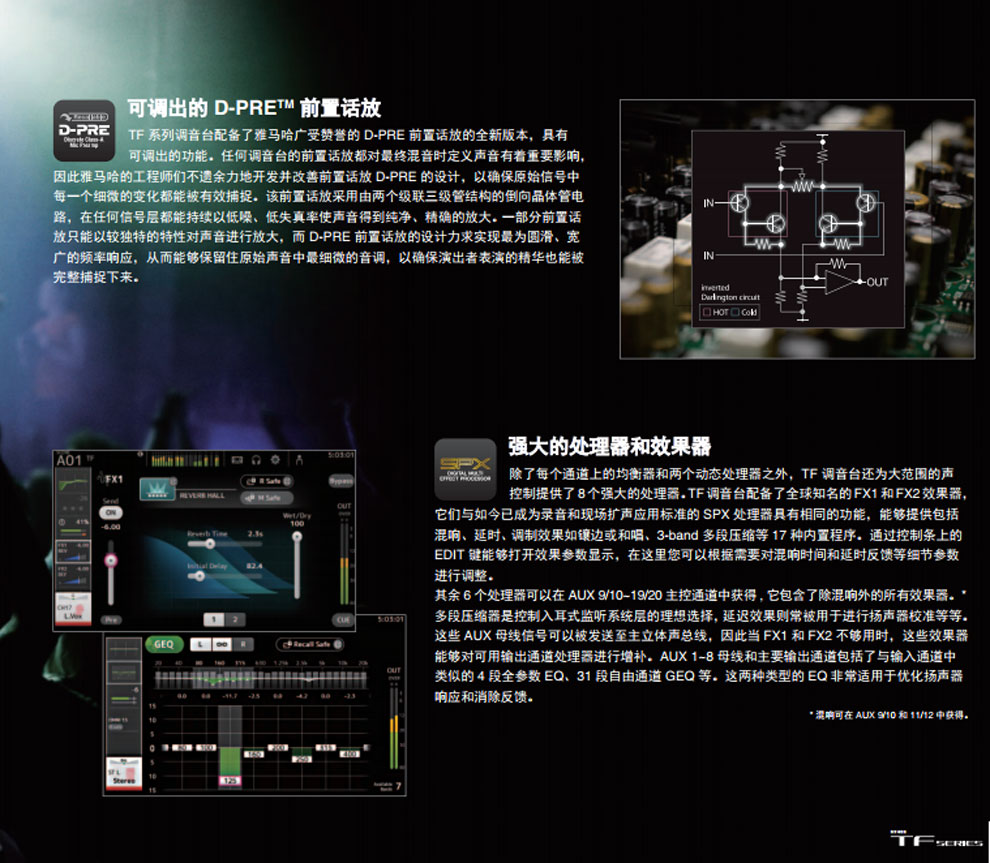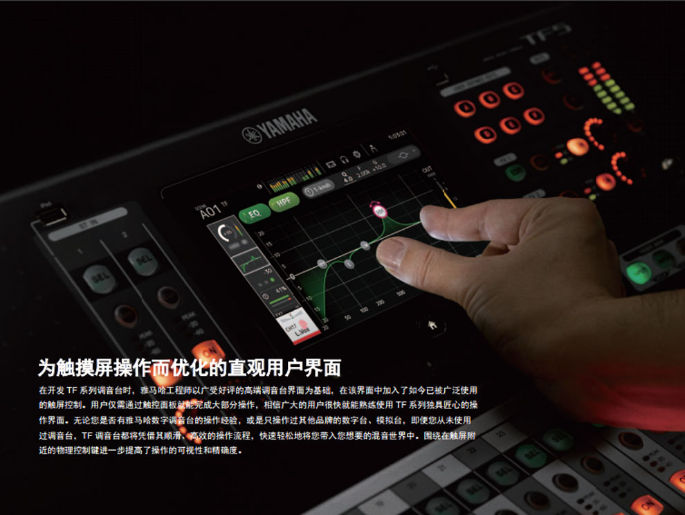 YAMAHA雅馬哈 TF5數(shù)字調(diào)音臺(tái)具備高輸入能力和推子數(shù)量,32路數(shù)字調(diào)音臺(tái)是大型應(yīng)用中的理想選擇。