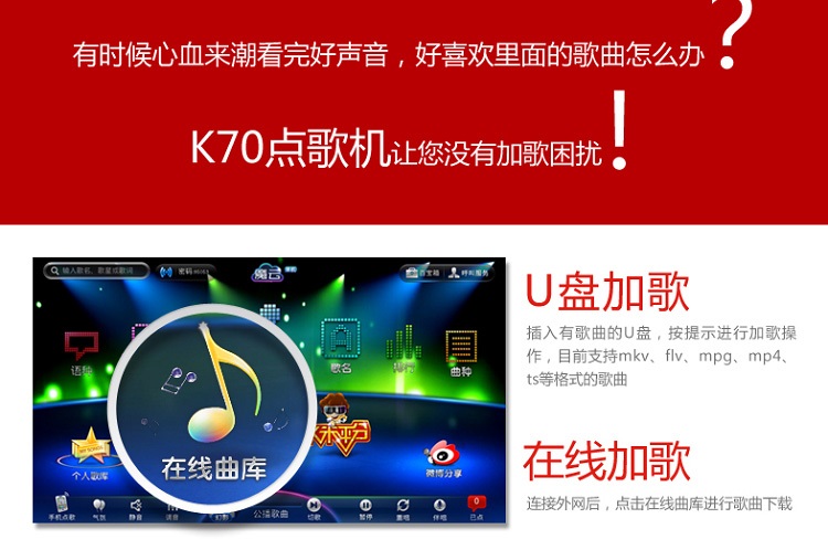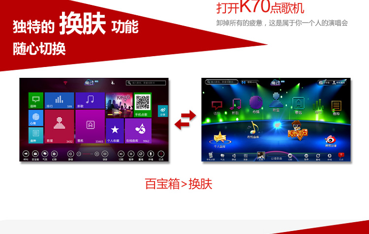 >> 移動點歌、微博分享、個性換膚等人性化功能